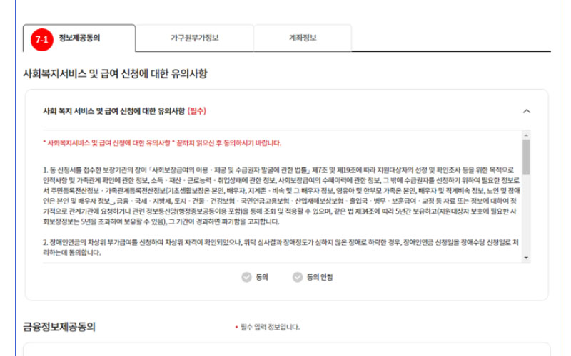 ② 신청서식 : 사회보장급여 제공(변경) 신청서, 금융정보 등 제공동의서(부앙의무자 포함)