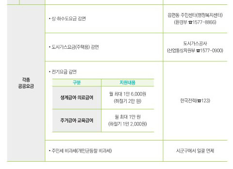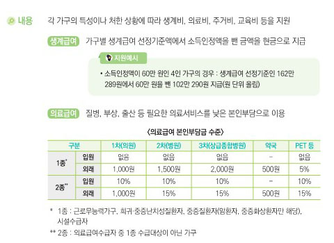 급여의 종류와 지원내용