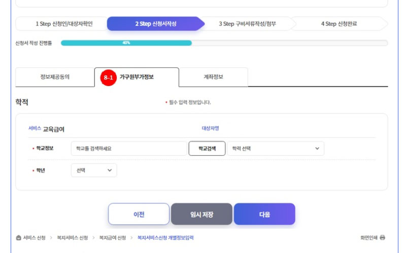 1) 급여신청서의 제출