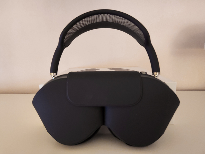 에어팟맥스의 전체 무게는 384.8g입니다. 소니의 WH-1000 XM5의 무게가 250g 인 것에 비하면 1.5배가 넘는 무게입니다. 단순히 135g이라는 수치로만 본다면 큰 단점이 아니라고 할 수도 있겠지만, 장시간 착용한다면 무시할 수만은 없는 정도인 것 같습니다. 에어팟맥스의 헤드밴드 부분은 메쉬로 디자인되어 있어 단순히 머리 위쪽 가해지는 압박은 적은 편이지만 착용 시 꽤 무게감이 있었고, 장시간 착용하는 경우에는 목 뒤쪽으로 피로감이나 통증을 종종 느끼기도 하였습니다.